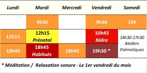 ATELIERS THEMATIQUES : Une approche théorique et pratique (souffles, postures, concentrations) pour développer et approfondir la pratique autour d'un thème traditionnel du yoga (saisons, cakra, pranayama, santé, ...).
